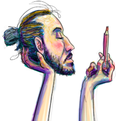 Formado pela UDESC em um curso generalista, fui cada vez mais me interessando por projetos diversos e aprendi a abraçar diferentes estilos de desenho. Atuei como Designer Gráfico e Ilustrador por 3 anos na antiga Editora Moderna, hoje Santillana Educação, e depois como facilitador gráfico, por 5 anos, na Design de Conversas, fazendo trabalhos para grandes empresas, entre elas B3, Fiat, ONU e Google. Em paralelo a esse percurso, como freela, sempre me dediquei ao desenho e à ilustração: fiz rótulos de cerveja artesanal, ilustrei livros e tambem cartilhas para o Ministério do Meio Ambiente do Pará e da Bahia. Gosto de fazer prints para vender em feiras, onde posso investir em me relacionar com as pessoas.